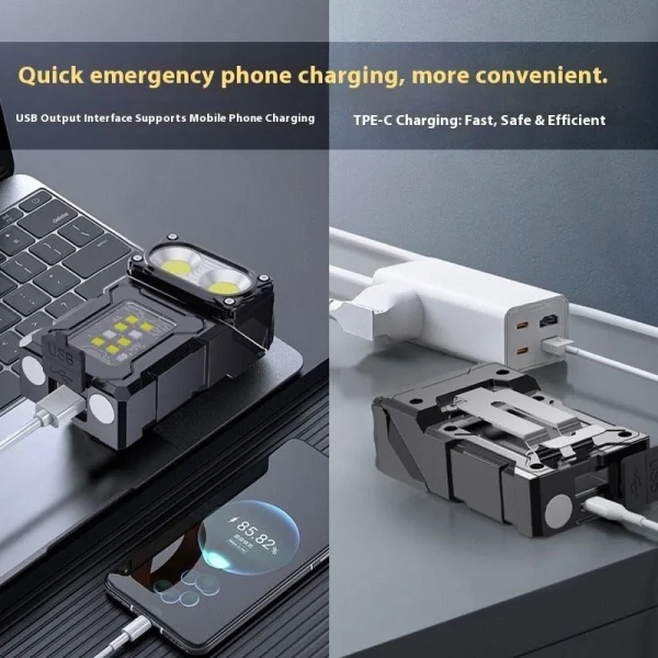 • Beleuchtungsmodi: Bietet bis zu 7 Modi, darunter hoch, mittel, niedrig, SOS sowie verschiedene Lichtfarben (Schwarzlicht, Rotlicht, Stroboskop, Weißlicht).